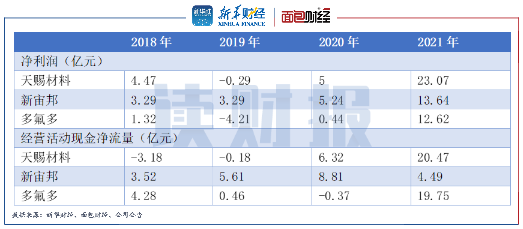 圖3:天賜材料、新宙邦、多氟多凈利潤和經(jīng)營活動(dòng)現(xiàn)金凈流量