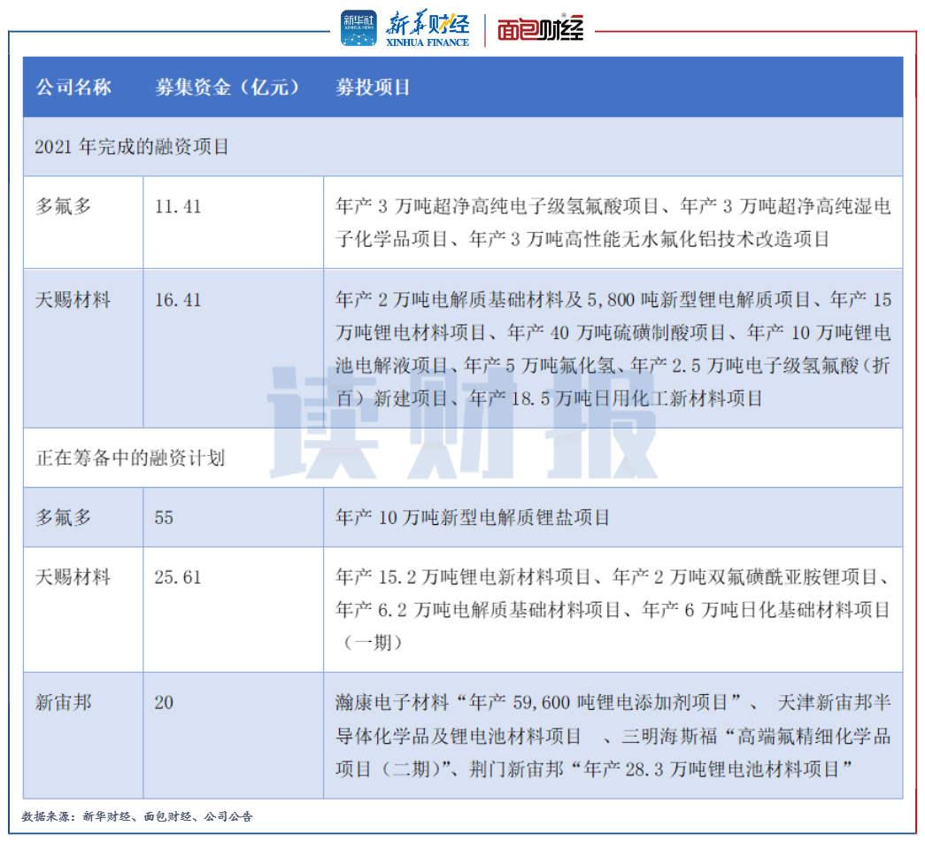 圖4:天賜材料、新宙邦、多氟多募資情況