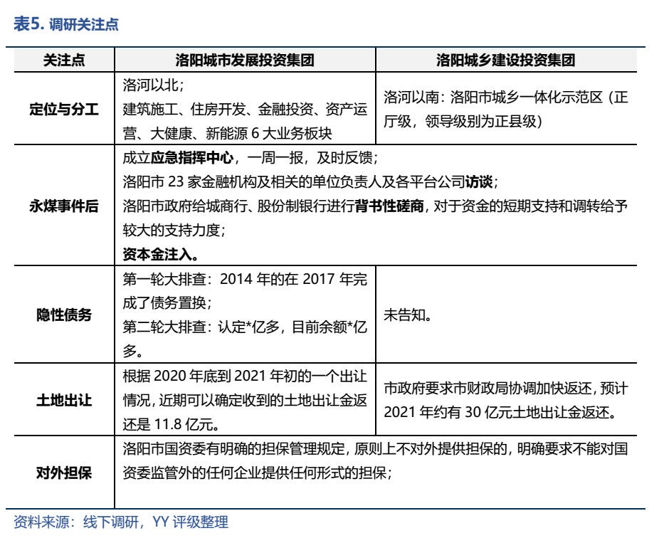 洛陽(yáng)市級(jí)的這兩家平臺(tái)分工還是很明確的,主要以洛河為界開展業(yè)務(wù),除了純粹的城投業(yè)務(wù)之外,都有一些市場(chǎng)化業(yè)務(wù)的轉(zhuǎn)型改革。永煤事件之后,洛陽(yáng)市政府的應(yīng)對(duì)態(tài)度和舉措也很積極,通過(guò)多種方式(具體見上表)提振市場(chǎng)和發(fā)行人的信心、并給予實(shí)質(zhì)性的資金支持。