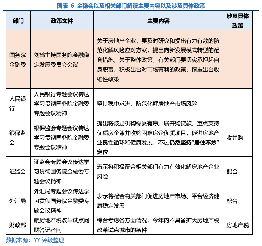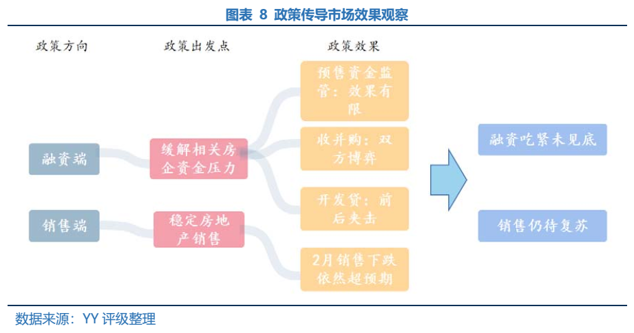 綜上四點,我們觀察到目前市場一方面房企融資依然吃緊,現(xiàn)有融資政策未實質(zhì)改善資金鏈緊張情況,另一方面銷售仍待復(fù)蘇,前期房價下跌行業(yè)景氣度下行預(yù)期依然慣性引導(dǎo)購房意愿低迷,政策也延遲了擴(kuò)大房地產(chǎn)稅改革的試點城市。