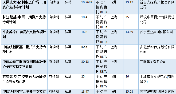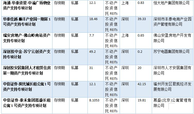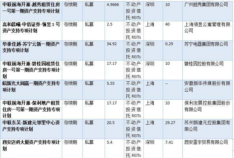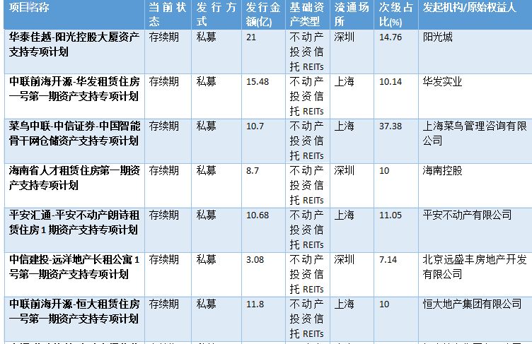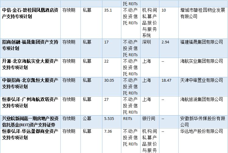 表2-2:已發行類REITs情況