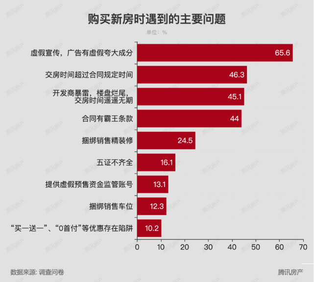 騰訊房產發布的《2022年中國購房者消費調查報告》顯示,這9大坑是購房者遭遇最多的坑: