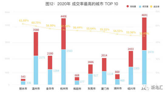 房抵貸放款和不良資產投資最熱的地區一直是北京、上海、廣州、杭州、深圳等一線城市,而上海又是這些城市中最熱的,當上海法拍限購以后,可能會導致部分投資機構由上海轉向其他地區進行投資,比如成都、青島、重慶等新一線城市。根據為睿學院數據統計,全國成交率城市排名中,最高的是重慶,2020年成交7624套房。通過成交量和成交率城市排名也能看出一些新的機會。