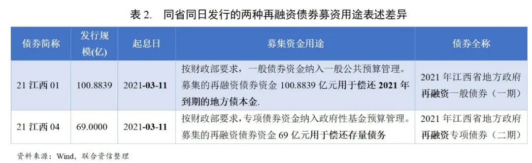 之所以采用再融資債券助力償還地方政府隱性債務(wù),或主要由于融資債券用途具備靈活調(diào)整的可能性。在當(dāng)前的地方政府債券制度框架下,新增債券及置換債券用于化解現(xiàn)期債務(wù)均面臨一定操作上的約束。新增債券方面,新增債券是“新增”的地方政府債務(wù),且由于新增一般債券受到預(yù)算赤字的約束,每年新增規(guī)模很小,如2021年我國預(yù)算安排新增地方政府債務(wù)限額4.47萬億元,其中一般債務(wù)限額僅0.82萬億元,專項債務(wù)限額3.65萬億元,新增專項債券規(guī)模雖然較多但其募集資金需受限用于新開工項目。置換債券是用于償還清理甄別認定的截至2014年末全部非政府債券形式存量政府債務(wù)。因此,新增債券及置換債券均面臨一定操作上的約束。而再融資債券主要強調(diào)債務(wù)滾續(xù)的作用,募集資金用途具備一定靈活調(diào)整的可能性。