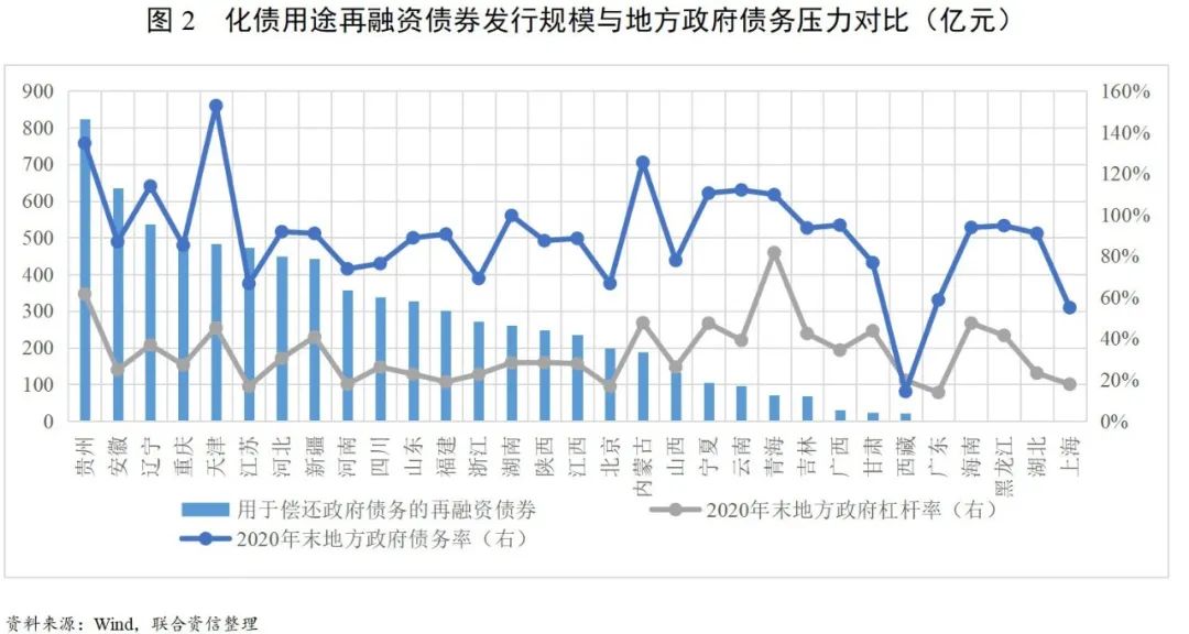 一是地方財政及金融風(fēng)險管理壓力較大。一方面,近年來我國實施大規(guī)模減稅降費,帶來一些地方財政減收,而2020年受疫情影響,財政減收增支壓力進一步增加。2020年全國各省一般公共預(yù)算收入增速中位數(shù)為0.1%,增速下滑的省份有14個,地方財政受到的負面影響相對較大。另一方面,疫情導(dǎo)致中小銀行信用風(fēng)險有所暴露,銀行信貸資產(chǎn)質(zhì)量有所下滑,地方平臺公司作為銀行主要債務(wù)人,債務(wù)風(fēng)險極易傳導(dǎo)至銀行業(yè),進而引發(fā)區(qū)域性金融風(fēng)險,再融資債券助力化債在全國范圍的展開,一定程度上緩解了中小銀行資產(chǎn)端信用風(fēng)險管理壓力,防范發(fā)生區(qū)域性金融風(fēng)險。此外,2020年陸續(xù)出現(xiàn)的國有企業(yè)及城投非標違約等信用風(fēng)險事件導(dǎo)致流動性風(fēng)險加大,部分區(qū)域融資環(huán)境受到不利影響。