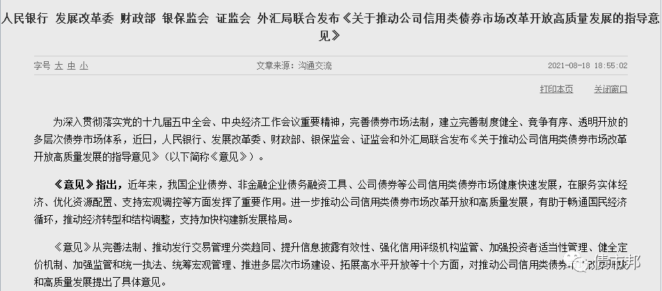 《關于推動公司信用類債權市場改革開放高質量發(fā)展的指導意見》出臺振奮人心