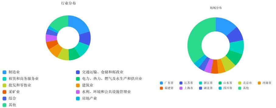 圖1-3 行業分布 圖1-4 地域分布