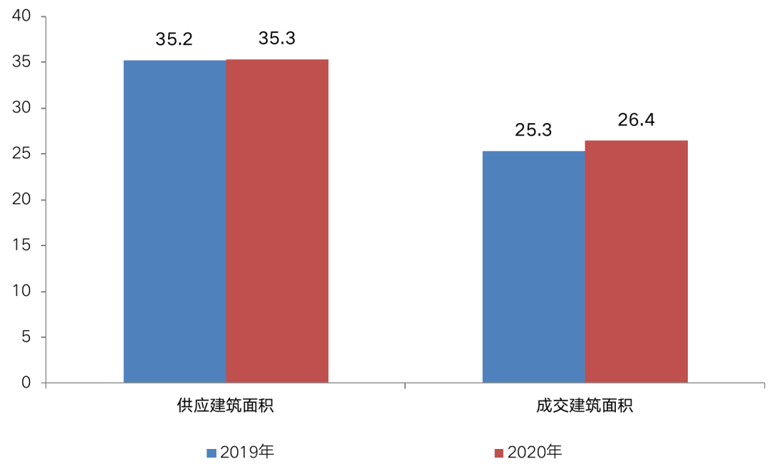 2020年三季度,受各城市供地節(jié)奏影響,土地市場(chǎng)成交量較二季度明顯下滑,疊加“房住不炒”和“三條紅線”政策影響,土地成交市場(chǎng)有所降溫,但全年仍然保持了一定程度的上漲,土地供應(yīng)端則保持與去年持平,CRIC監(jiān)測(cè)數(shù)據(jù)顯示,截至12月22日,全國(guó)300城土地掛牌量約16.0萬公頃,建筑面積約35.3億平方米。