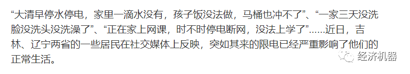 由于早有預期,對于近期的各地停電新聞,我一開始并不是很在意的,但很快wx上各種圖片、文章鋪天蓋地,嚴重程度超過預期,比如紅綠燈因停電而停擺,比如停水停電,家里沒法做飯、洗澡、上網課的。更有極端的情況,比如