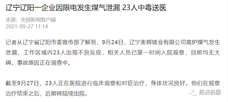 出現因排氣扇停擺而煤氣中毒、孕婦被迫爬二十幾層樓的、甚至有企業因限電而出現煤氣泄漏和中毒的狀況。情況之嚴重,超出常識的范疇了。