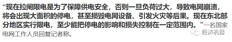 當然,自媒體們聞風而動,各種揣測和解讀,比如“大棋黨”們解讀為國家正在下“一盤大棋”;有人解讀為“反擊美國陰謀”,還有人解讀為“最不壞的方案”的,要么諂媚,要么忽悠,可謂非蠢極壞。實際上,這次大面積停電,就是各方面的“扭曲”和“失衡”的一次集中爆發,沒有那么多布局落子間的“談笑風生”和瀟灑寫意。
