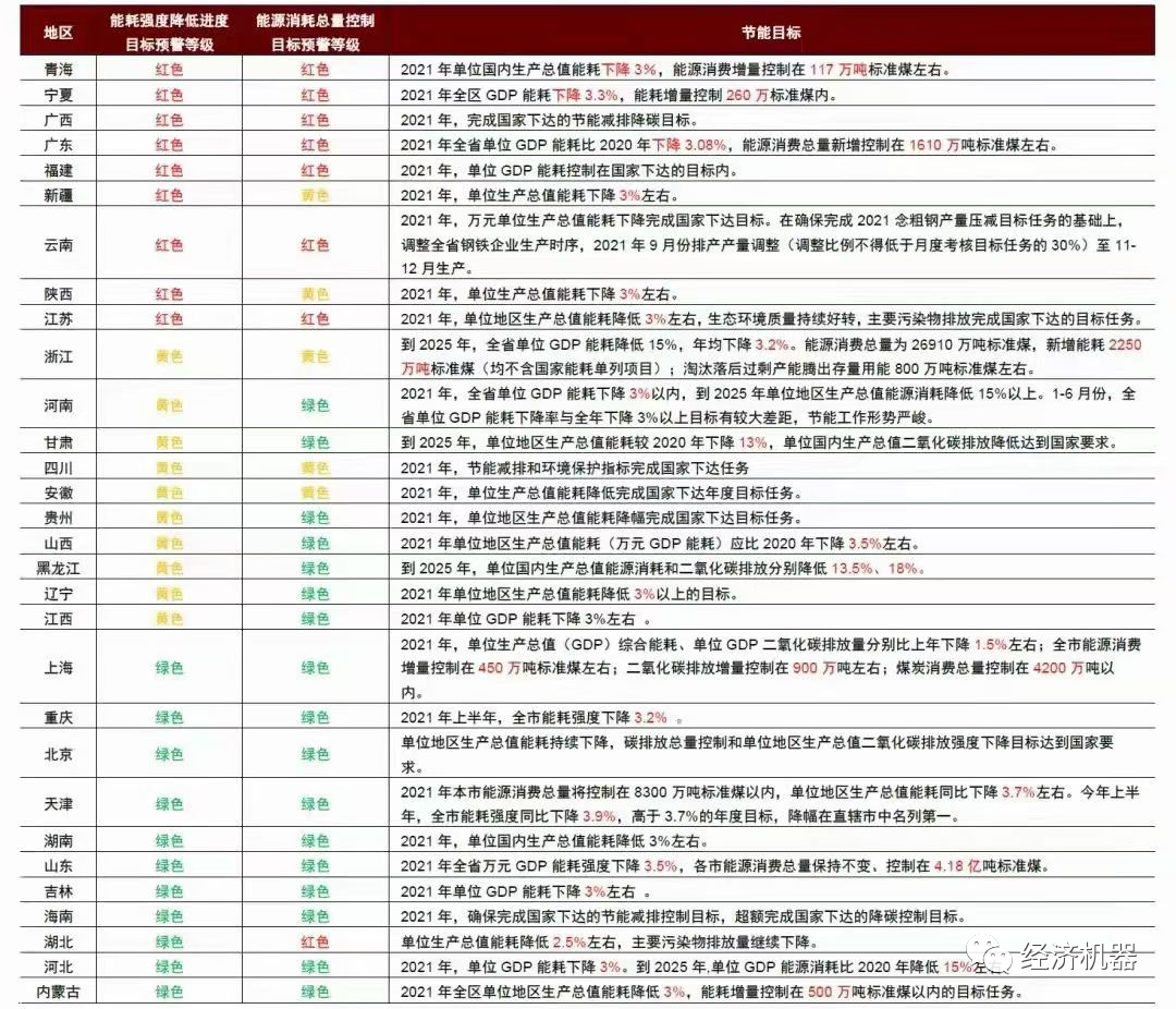 圖7:各地能耗雙控狀況梳理
