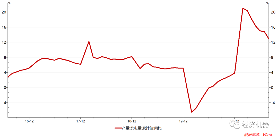 在出口和工業生產高景氣下,我國發電量也呈現明顯的“V”型反彈的態勢,發電量累計同比增速從2020年最低的-8%,快速攀升至今年初的最高的19.5%,至今仍有11.3%的漲幅(圖5)。用電需求的暴跌和暴漲,既加劇了動力煤價格的暴漲,也加劇了對電網的沖擊,使電力階段性短缺具有一定必然性。