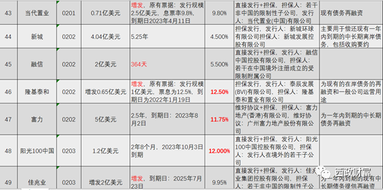 近期發行的境外美元債中,以借新還舊為目的的中長期美元債居多。但是,我們近期在與境外投資人溝通時,境外投資人卻反饋自從華夏幸福債券違約事件后不少境外機構投資人已開始排查流動性壓力較大的類似房企,對此類房企發債的市場規避情緒也較為濃厚,總體上可能將不利于后續再融資。