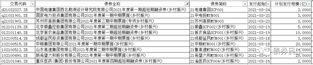 1、從發(fā)行的債券產(chǎn)品類型來(lái)看,鄉(xiāng)村振興票據(jù)包括中期票據(jù)和超短期融資券。目前已經(jīng)公告發(fā)行的鄉(xiāng)村振興票據(jù)包括6只中期票據(jù)產(chǎn)品和4只超短期融資券產(chǎn)品。《問(wèn)答》中沒(méi)有明確具體的產(chǎn)品類型,但是從命名規(guī)則可以看出,SCP、CP、MTN, 、PPN和ABN均可以作為鄉(xiāng)村振興票據(jù)的載體。