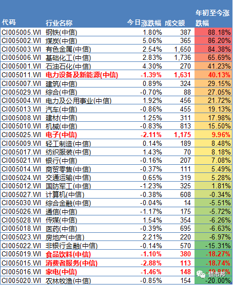 2021年9月的今天,打開行業(yè)年內(nèi)漲幅榜一看,媽呀,原來大周期才是YYDS。