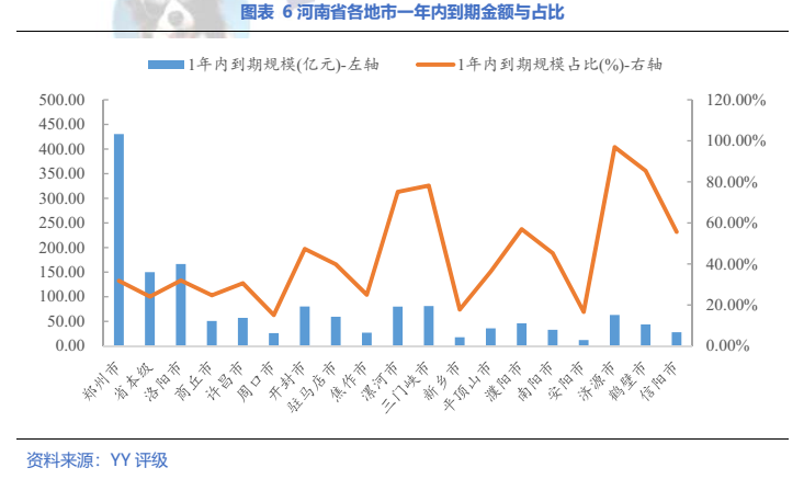 全省一年內(nèi)到期債券占34.7%,鄭州占比最高,近30%
