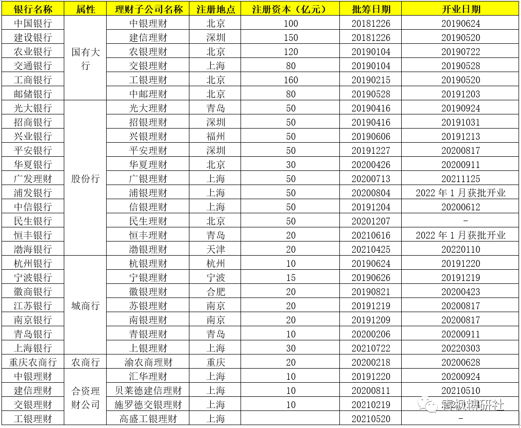 2、29家理財(cái)公司具體包括國(guó)有6大行、11家股份行(僅余浙商銀行)、7家城商行、1家農(nóng)商行以及4家合資理財(cái)公司。