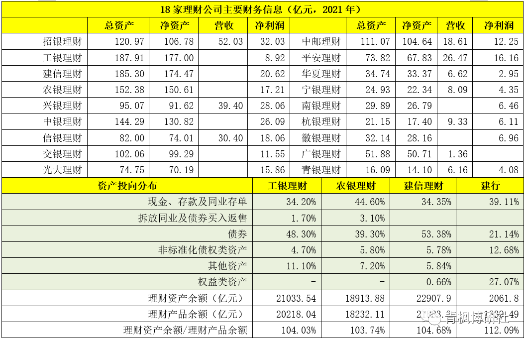 三、部分理財(cái)公司信息梳理(2021年底數(shù)據(jù))
