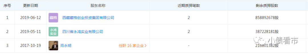 藏格集團和永鴻實業為一致行動人,肖永明合計持有藏格控股61.55%股份,但目前全部股份均被質押和凍結。