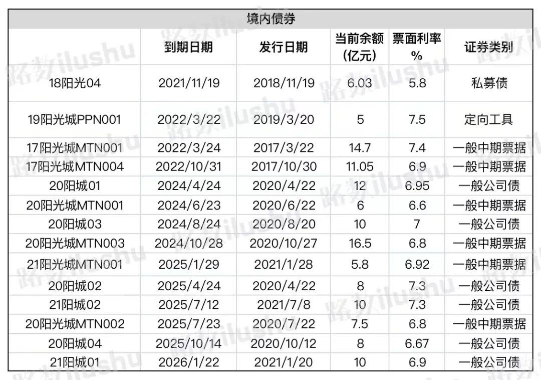 其中有:一只由“中山證券-陽光城集團購房尾款資產(chǎn)支持專項計劃”發(fā)起的ABS產(chǎn)品“20陽光優(yōu)”,回售到期。一筆為美元債“陽光城10% N20230212“,也是回售到期。另外還有一筆境內(nèi)債“18陽光04”和一筆供應(yīng)鏈。