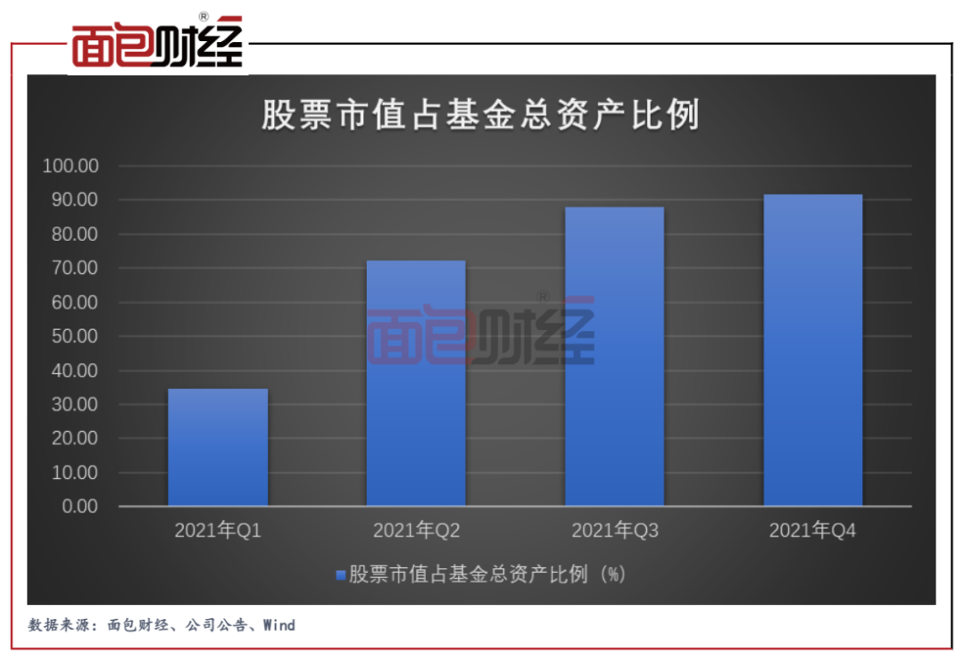 數據顯示,易方達戰略新興產業股票型證券投資基金的股票市值占基金資產凈值比例從2021年一季度不到四成一路上升至2021年四季度超過九成。