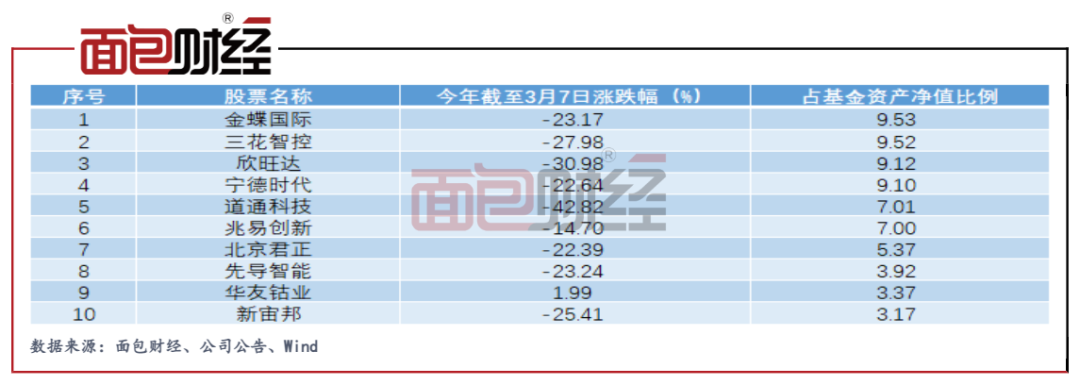 從十大持倉今年以來的股價表現來看,基金多個重倉股“踩雷”。除了華友鈷業、兆易創新,其余持倉的跌幅均已超過20%。其中,道通科技、欣旺達更是分別下跌超過42.82%和30.98%。