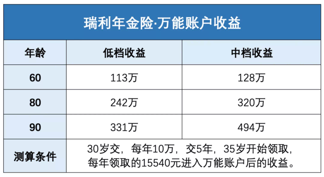 瑞利年金保險,由年金賬戶+萬能賬戶組成。