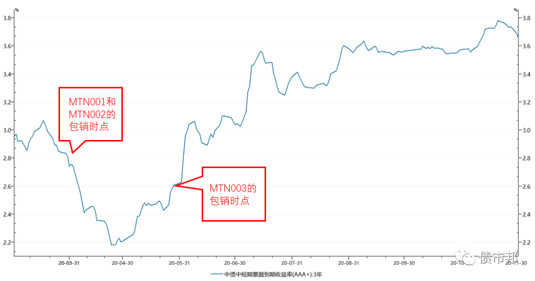 要說MTN003的主就比MTN001和MTN002的主承差嗎?其實(shí)并沒有,如果將包銷時(shí)點(diǎn)換一下,將MTN001和MTN002的主承放到MTN003的包銷時(shí)點(diǎn),他們所做出的選擇也大概率是一樣的。包銷的規(guī)則和包銷戶的考核機(jī)制決定了他們的行動(dòng)模式。