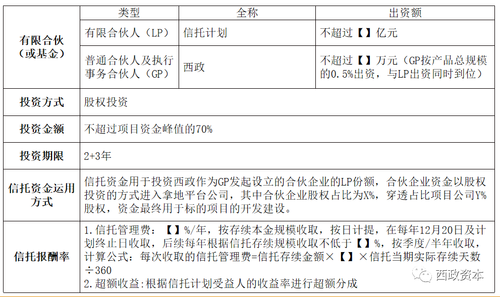 根據當前地產信托優先股融資業務的常規操作,以下就信托機構與我們基金或有限合伙合作的優先股融資業務進行舉例說明。