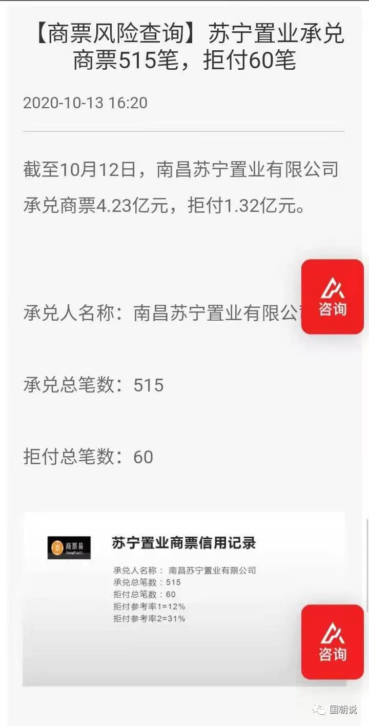 雖然,蘇寧置業(yè)很快補(bǔ)繳了稅款,不過(guò)這個(gè)也給我們提了個(gè)醒。2020年下半年,市場(chǎng)上就陸續(xù)傳出蘇寧置業(yè)子公司的商票發(fā)生逾期的事件。