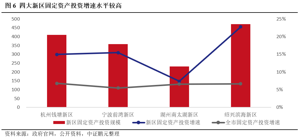 紹興濱海新區固定資產投資規模最高,作為浙江省重點建設的高能級平臺,四大新區整體增速水平較高