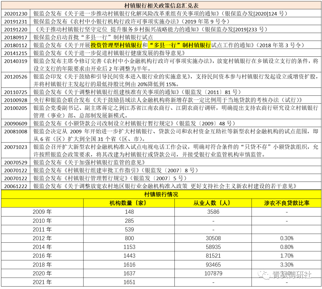 2018年1月12日,原銀監會發布《關于開展投資管理型村鎮銀行和“多縣一行”制村鎮銀行試點的通知》,這實際上體現出政策層面對村鎮銀行的鼓勵。
