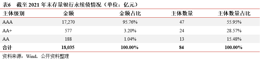 截至2021年末,有24家主體級別為AA+、13家主體級別為AA的銀行已成功發行永續債,未來中小險企也有較多的發行永續債機會。