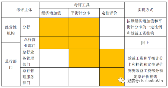 商業銀行的考核都是以經濟資本和經濟增加值為核心的激勵約束機制。2002-04年國內商業銀行大都起引入了經濟資本、經濟增加值為核心的激勵約束機制。初步實現了經濟資本彌補非預期損失的風險補償機制(經濟增加值=經濟利潤-資本成本,其中資本成本用于彌補非預期損失,經濟利潤通過風險撥備彌補預期損失),并建立起扣除資本成本之后的經濟增加值掛鉤激勵辦法,分行經濟增加值的考核,是分行計提效益工資的主要依據,分行效益工資按照一定比率與其實現的經濟增加值相掛鉤,改變了過去主要與利潤掛鉤的粗放方式,引導全行由利潤管理逐漸向價值管理轉變。