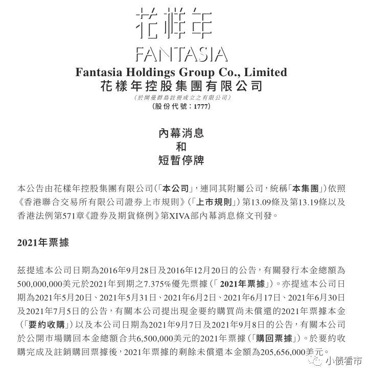 同時,花樣年控股于2021年9月29日上午九時正起在聯(lián)交所短暫停止買賣,直至另行通知。