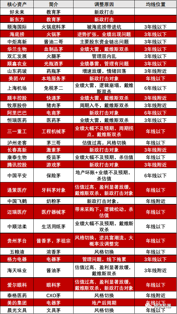 2)部分“核心資產”業績保持穩定,也會因為高估值和風格切換而出現中級別調整,但上升趨勢未破。比如部分白酒股,中報業績符合預期。但隨著資金從核心資產撤離,再加上高估值內在調整需求,也會出現一波調整。一般情況下,到了年線就會有較強支撐。但由于本輪中,前期漲幅過大,風格切換更加堅決,跌破年線成為常態,但一般不會跌破3年線。價格回調(比如50%),疊加業績增長(比如20%-30%),則會迅速消化掉高估值,然后有望再次向上。