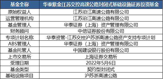 2022年5月6日,江蘇沿江高速公路有限公司作為原始權(quán)益人的“華泰紫金江蘇交控高速公路封閉式基礎(chǔ)設(shè)施證券投資基金”在上交所已受理!基礎(chǔ)設(shè)施項目類型為收費公路,項目名稱為滬蘇浙高速公路,高速公路收費經(jīng)營權(quán)及相關(guān)資產(chǎn)組評估價值為295,110.00萬元,剩余年限約10.5年。本期產(chǎn)品基金管理人和ABS管理人為華泰證券(上海)資產(chǎn)管理有限公司,財務(wù)顧問為中信證券股份有限公司,托管行為中國建設(shè)銀行股份有限公司,原始權(quán)益人的控股股東為江蘇交通控股有限公司。