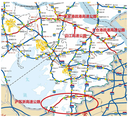 沿江高速公司的核心資產(chǎn)包括滬武高速公路(常州至太倉段)(簡稱“沿江高速公路”)、滬蘇浙高速公路、太倉港疏港高速公路和張家港疏港高速公路,所轄路段總里程超220公里。其中,沿江高速公路是江蘇省“七縱十橫十聯(lián)”高速公路網(wǎng)布局主骨架網(wǎng)(2017-2030年規(guī)劃)的重要組成部分,全長138.62公里,匝道約64公里,是江蘇省與上海市的主要出入通道之一,具有獨特的地域優(yōu)勢。
