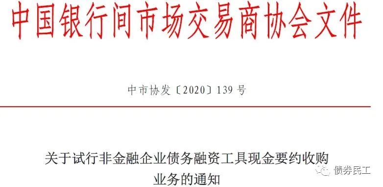 中國銀行間市場交易商協(xié)會(以下簡稱“交易商協(xié)會”)于2020年11月2日發(fā)布《關(guān)于試行非金融企業(yè)債務(wù)融資工具現(xiàn)金要約收購業(yè)務(wù)》,其中最重要的規(guī)定是可以對未到期的債務(wù)融資工具進(jìn)行進(jìn)行市場化收購回售。根據(jù)通知的要求,“現(xiàn)金要約收購是指發(fā)行人向特定債務(wù)融資工具(以下稱“標(biāo)的債券”)的全體持有人發(fā)出要約,以現(xiàn)金方式收購全部或部分流通中標(biāo)的債券并注銷的行為”。在這里需要明確的是,要約是面向全體債券持有人,但是收購結(jié)果是可以收購全部或者部分債券,并不強(qiáng)制要求對全部債券進(jìn)行收購。而且更重要的是,《通知》中規(guī)定,收購凈價可以低于每百元面值標(biāo)的債券剩余本金。
