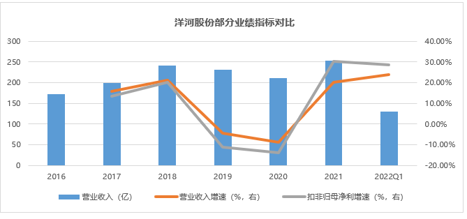 經(jīng)歷2年戰(zhàn)略調(diào)整期后,洋河股份(002304.SZ)(以下簡稱洋河股份或洋河)用2021年的成績單,展示出一條上升軌道的新起點。在2022年兩個重磅會議——年度工作大會和營銷動員誓師大會上,“以干為先”成為會議的主旋律。“敢與強者比高下”、“一鼓作氣干到底”,洋河股份的“進攻性”顯露無遺。洋河股份黨委書記、董事長,雙溝酒業(yè)董事長張聯(lián)東上任,無疑給洋河注入了一針強心劑。當(dāng)前白酒行業(yè)不似2020年前,整體增長放緩、存量博弈格局十分明顯。在這樣的市場環(huán)境下,“強勢”洋河的根源在哪里?通過智能化建設(shè)、全方位多層次激勵體系打造強執(zhí)行力團隊,洋河將加速跨越“二次創(chuàng)業(yè)”新階段。01 “十四五”強勢開局,“二次創(chuàng)業(yè)”勢頭迅猛4月28日晚間,洋河發(fā)布了2021年及2022年一季度業(yè)績報告。相較于以往年份,這份報告用“超預(yù)期”來形容更為恰當(dāng)。數(shù)據(jù)顯示,2021年,公司實現(xiàn)營業(yè)收入253.5億,同比增長20.14%;扣非歸母凈利潤73.73億元,同比增長30.44%。自2018年以來,在歷經(jīng)兩年調(diào)整期后,核心業(yè)績指標再創(chuàng)歷史新高。
