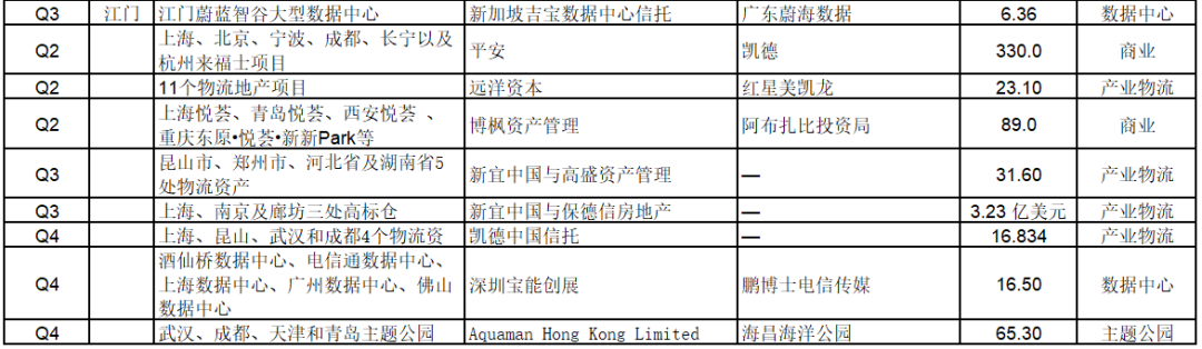 工業物業成交錄得大幅提升,占比15%,尤其是錄得多筆物流資產包交易。受益于在線新經濟而加速發展的數據中心連續三個季度錄得成交。