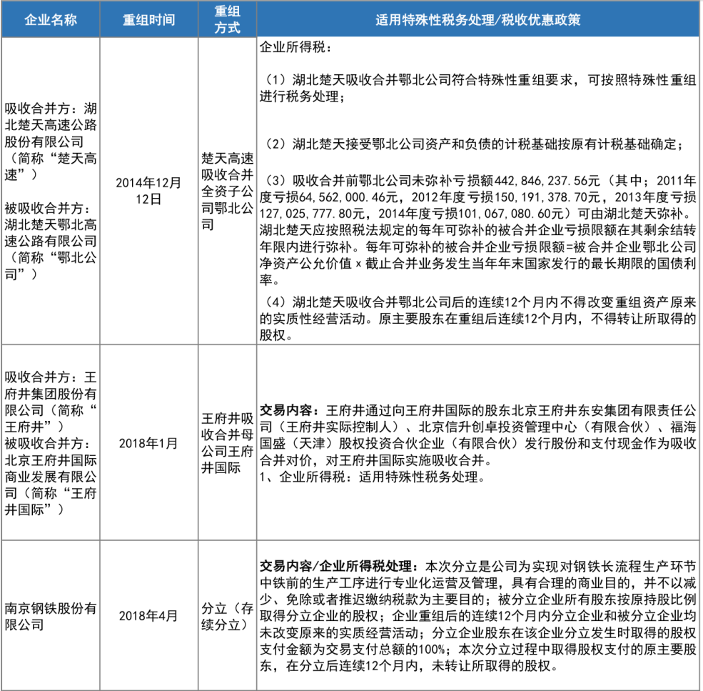 根據(jù)筆者檢索,自2018年以來,包括但不限于有以下境內(nèi)上市公司重組,適用了特殊性稅務(wù)處理: