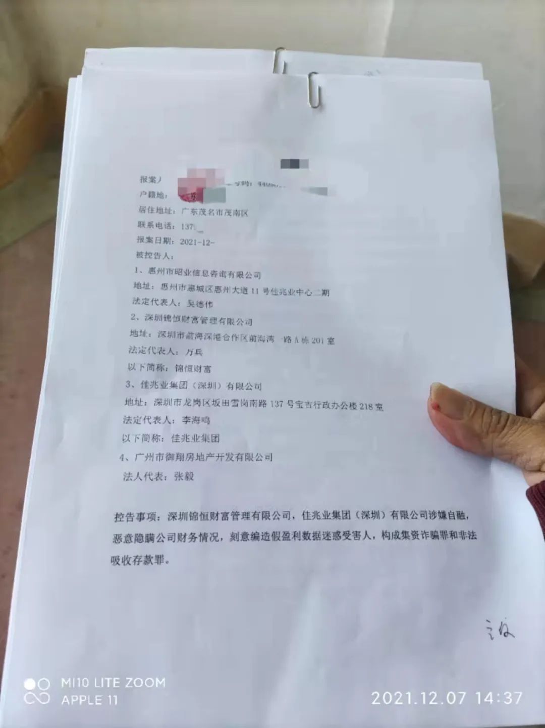 11月4日,500余名投資人心急火燎地趕到佳兆業公司總部討要說法。錦恒財富的年利率在8%-13%之間,“它說是理財產品,其實底層資產都是公司的房產項目?!蓖跸壬鷮P凰網《風財訊》坦誠,其實很多人都知道是怎么回事,形勢好的時候,拿回本金都沒有問題,只是誰也沒想到,會是現在這樣的情況。