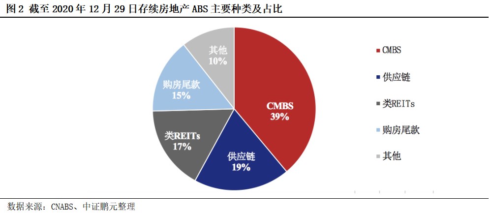 根據(jù)基礎(chǔ)資產(chǎn)的不同,房地產(chǎn)ABS可細(xì)分為供應(yīng)鏈ABS、購房尾款A(yù)BS、物業(yè)費(fèi)ABS、CMBS、類REITs和其他。