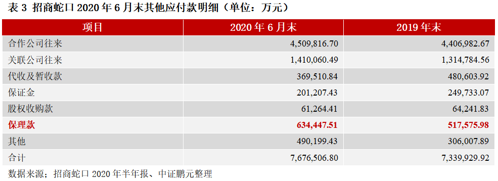 案例2:2020年上半年,“招商創(chuàng)融-招商蛇口供應(yīng)鏈5期資產(chǎn)支持專項(xiàng)計(jì)劃”發(fā)行,基礎(chǔ)資產(chǎn)為供應(yīng)商對招商局蛇口工業(yè)區(qū)控股股份有限公司(以下簡稱“招商蛇口”)享有的應(yīng)收賬款債權(quán)。在公司2020年半年度報(bào)告中,ABS融資款項(xiàng)計(jì)入“其他應(yīng)付款”,款項(xiàng)性質(zhì)為“保理款”。
