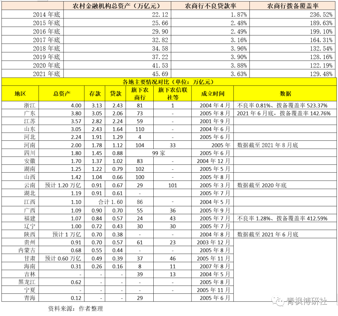 例如,廣東省聯(lián)社的撥備覆蓋率僅為142.76%,浙江省聯(lián)社的不良貸款率和撥備覆蓋率分別為0.81%和523.37%,福建省聯(lián)社的不良貸款率和撥備覆蓋率分別為1.28%和和412.59%,整體上看均處于較好的位置。