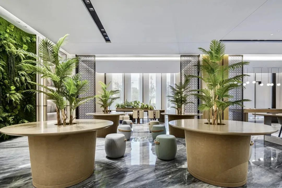 • 大堂門廳打造:大堂是客戶進入項目的第一印象區,方隅十分看重這一區域的品質感,會展項目的大堂有大理石地面,大篇幅的綠植墻面,同時配有會客區、臺球廳、會議室等功能區隔分明的公區。