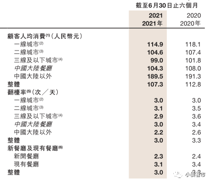 2021年中報人均消費和翻臺率