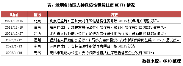 除了保障性租賃住房貸款,公募REITs如何對(duì)接保障性租賃住房也成為了近期各地政策的重點(diǎn)關(guān)注方向,其中如2022年1月19日,無錫發(fā)布《市政府辦公室關(guān)于加快發(fā)展保障性租賃住房的實(shí)施意見》,其中就提到支持保障性租賃住房建設(shè)、改造、運(yùn)營企業(yè)發(fā)行不動(dòng)產(chǎn)投資信托基金(REITs)融資。可見,在未來多方位的保障性租賃住房領(lǐng)域融資支持下,將在一定程度上引導(dǎo)房企調(diào)整投資布局,同時(shí)也不排除部分房企主動(dòng)向保障性租賃住房方面積極發(fā)力。